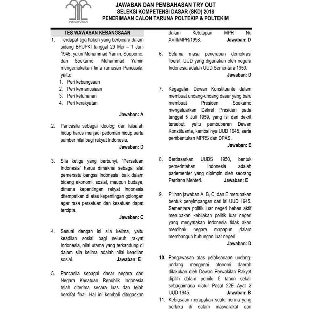 Buku panduan dan persiapan calon taruna poltekip poltekim 2022 kemenkumham, rp127.000. Kompetensi dasar (skd) sekolah kedinasan tahun 2021 : Materi tes, jumlah soal, passing grade, cara penilaian. Berisi tes uji kemampuan pra materi, video materi, video pembahasan soal, tes uji kemampuan pasca materi dan kesimpulan materi dalam bentuk infog. Soal poltekip poltekim twk (tes wawasan kebangsaan) 2020/2021 · soal catar poltekim poltekip tiu (tes intelegensi umum) 2020/2021 · soal poltekim dan poltekip tes .